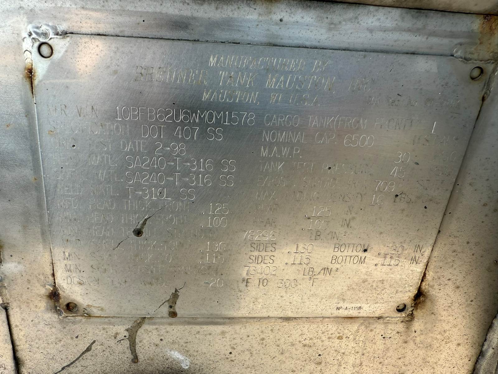 1998 Brenner 6500 Gallon Center Discharge MC 307 Chemical Tank Trailer