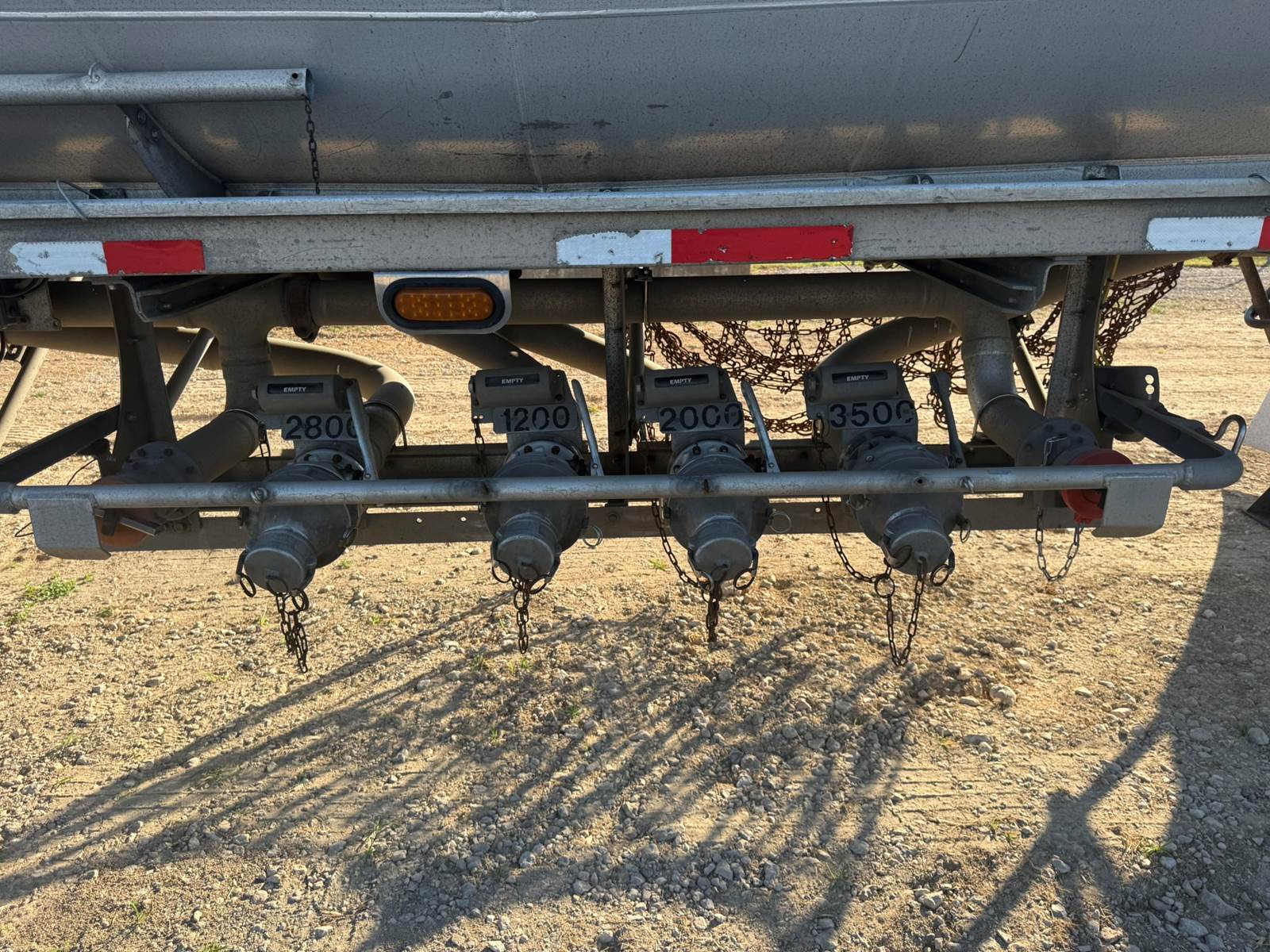 Specs: Capacity: 9,500 gallons Compartments: 4 (3500 / 2000 / 1200 / 2800) Material: Aluminum Design: Double taper Suspension: Air ride Brakes: Drum Tires: (4) Super Singles – 445/50R22.5 Valves: Air-operated internal valves Ladder: Rear access Hose Tray: Full-length on Curbside