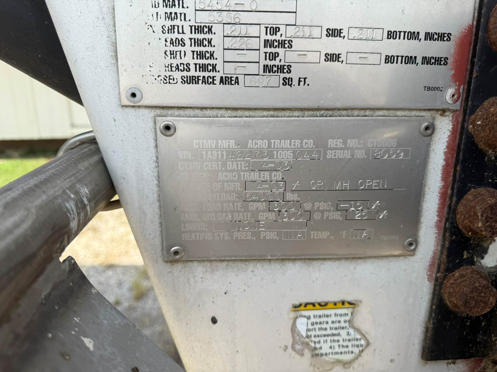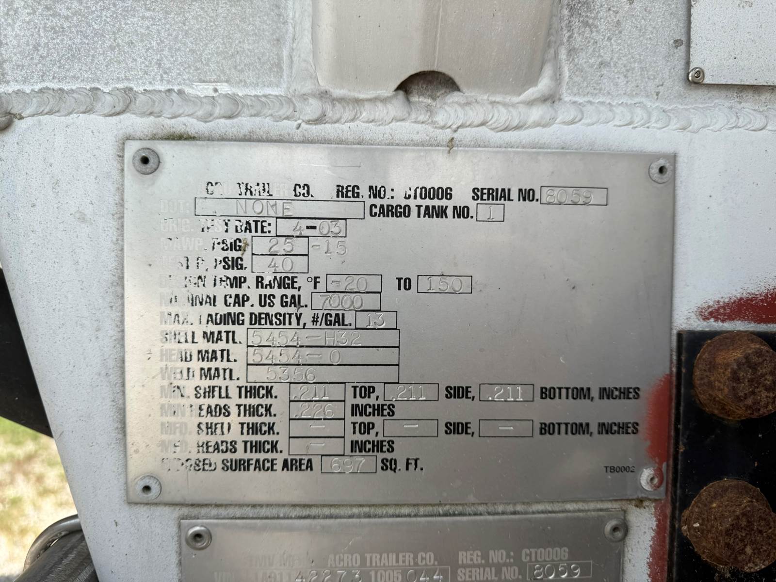 gallon (166 BBL) vacuum tank trailer, non code, Aluminum composition, Air Ride Suspension, Ladder w/
